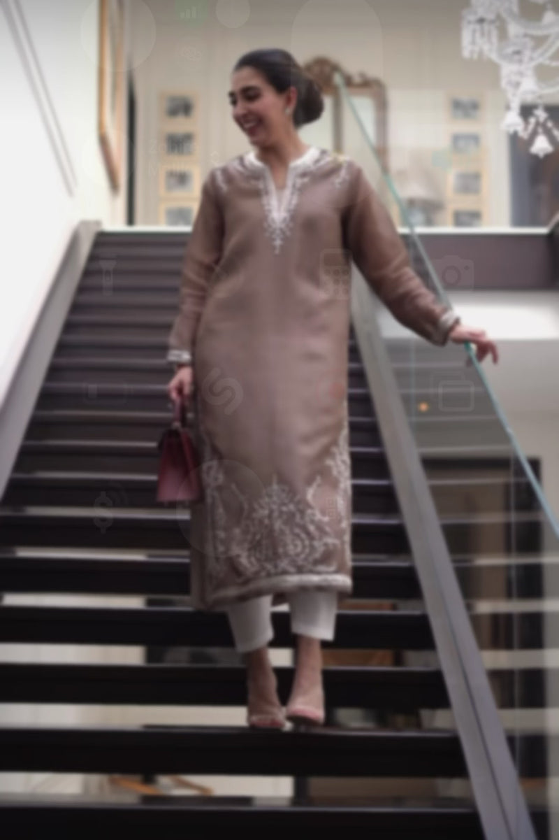 Warm, understated, and effortlessly chic, Brownstone is crafted in a rich earthy hue complemented by intricate embroidery along the neckline and hem. The clean, elongated silhouette offers timeless appeal, making this ensemble a perfect choice for elegant daywear, intimate gatherings, and refined festive occasions.